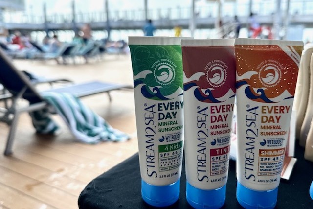 Stream2Sea sunscreen’s active ingredient is non-nano titanium dioxide, which offers protection from UVA and UVB rays. Non-active ingredients include green tea, tulsi, wakame, aloe, coconut oil, and olive leaf. The sunscreen absorbs quickly, isn’t greasy, and is water resistant for up to 80 minutes. Stream2Sea sunscreens are vegan and are kind to you, your skin, and the sea.